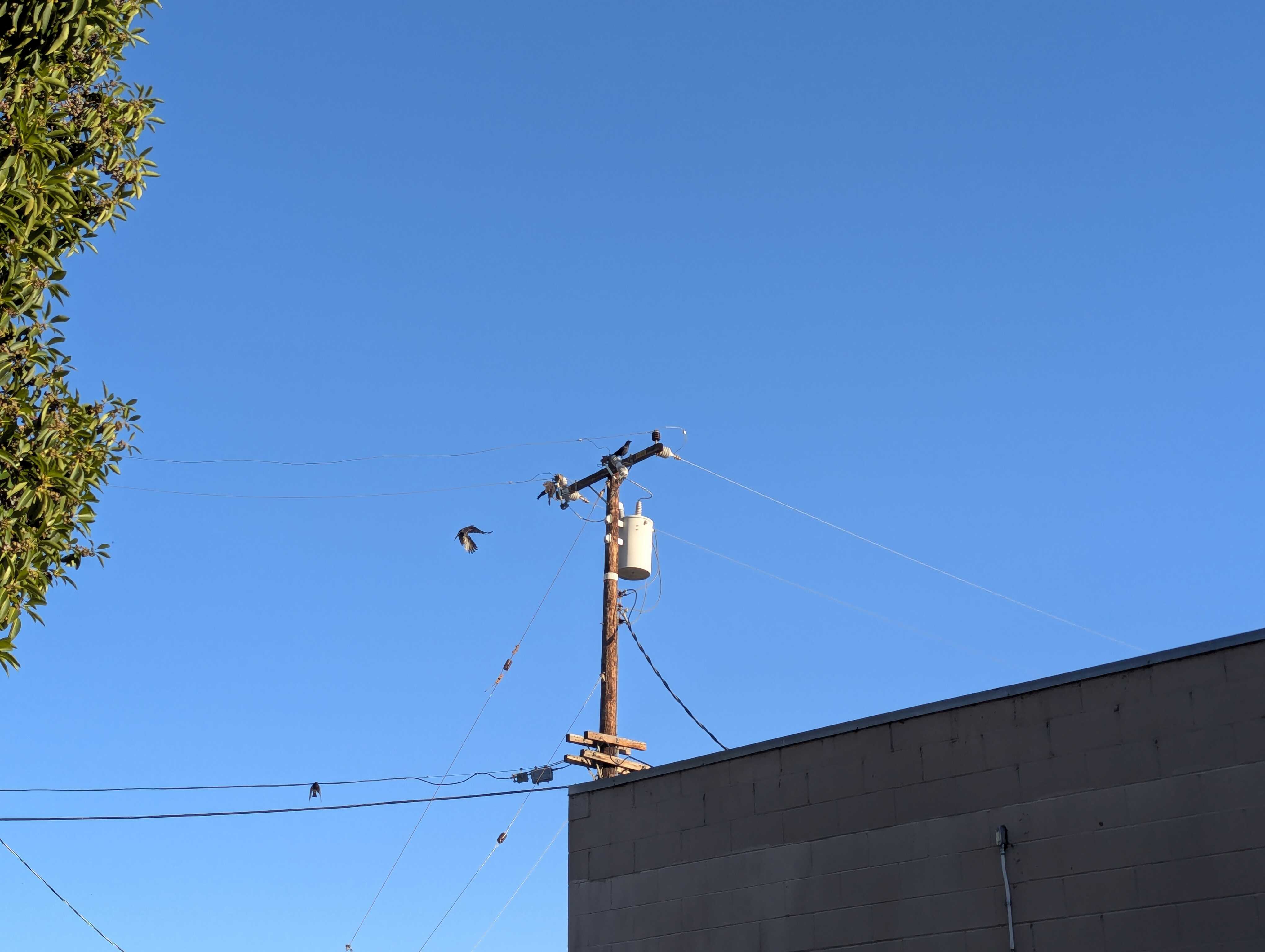 Power line pole. There’s a bird on it.