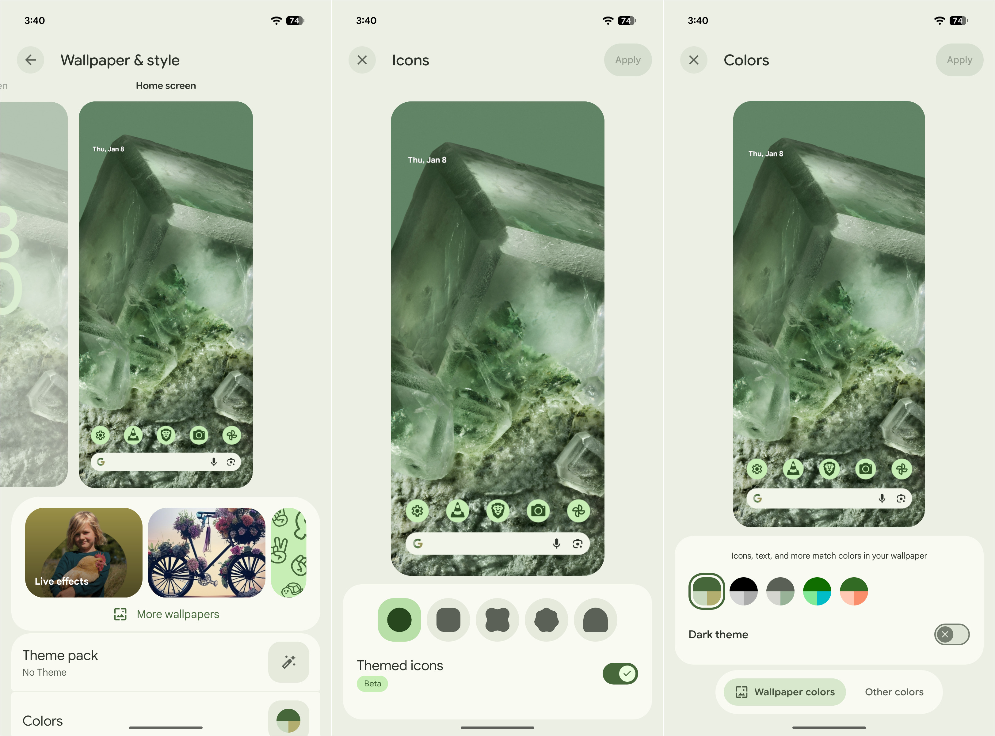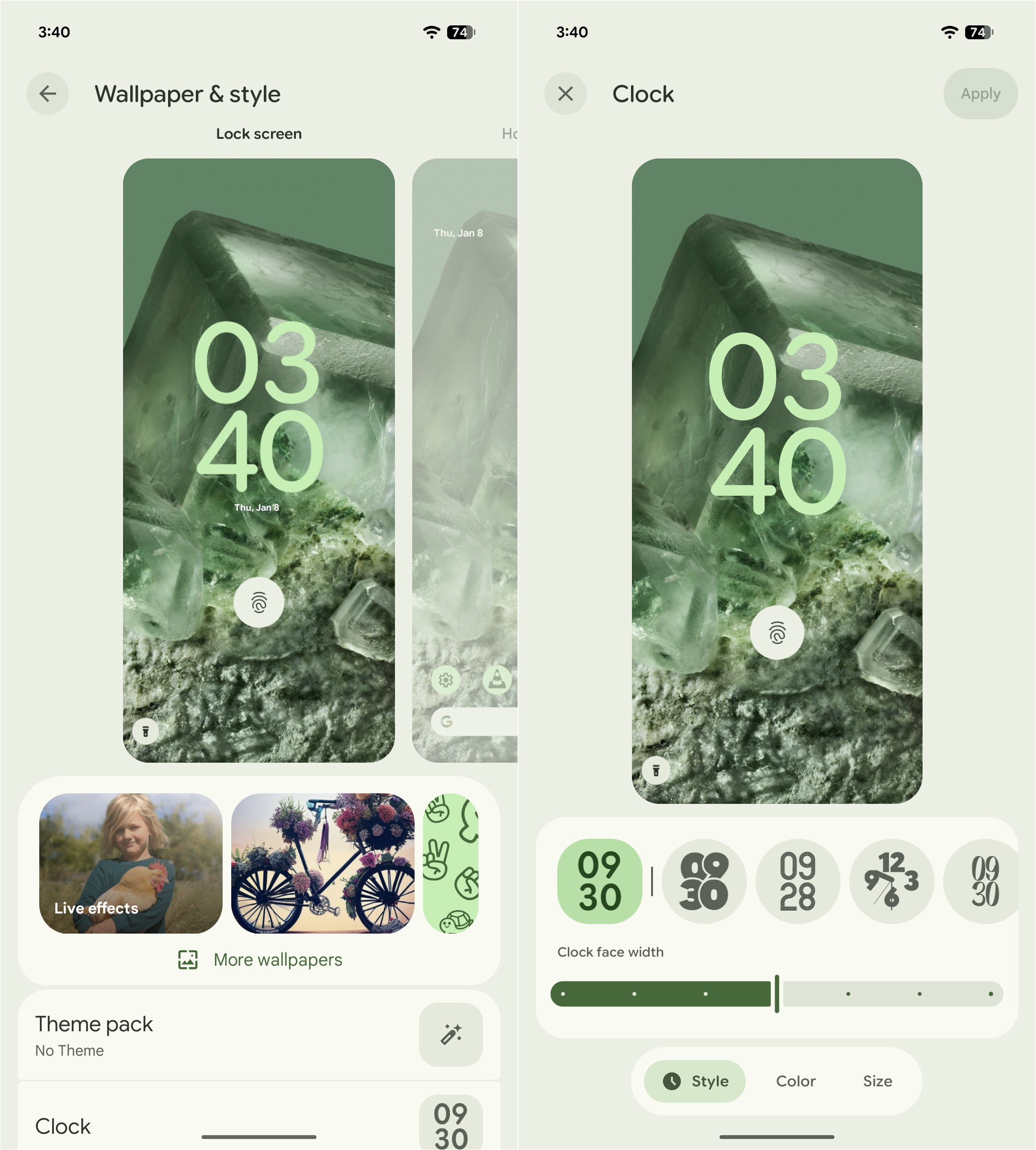 Material 3 Expressive customization options. For some reason I didn't screenshot the home screen...