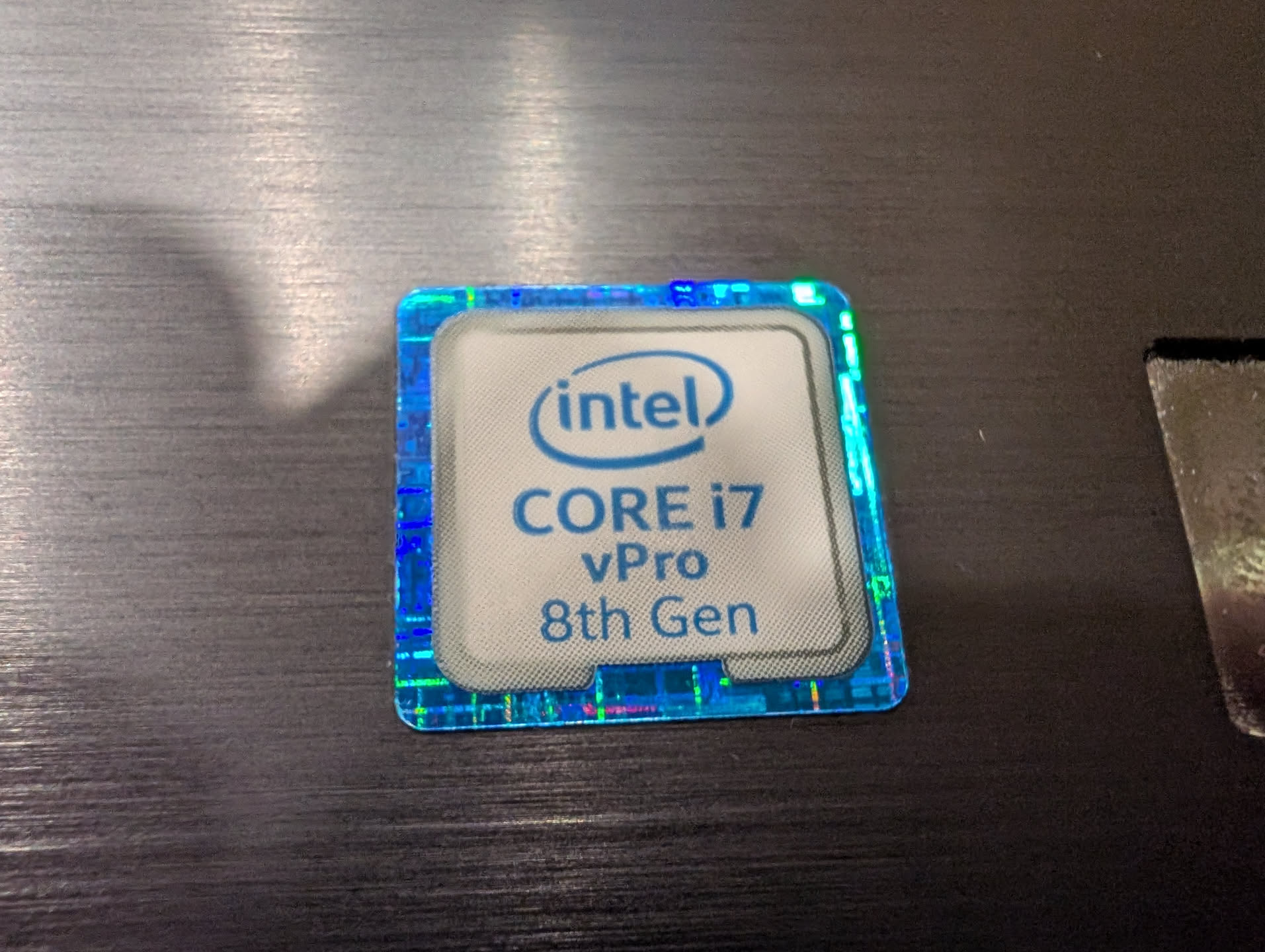 Macro photo of the i7 sticker on the laptop.
