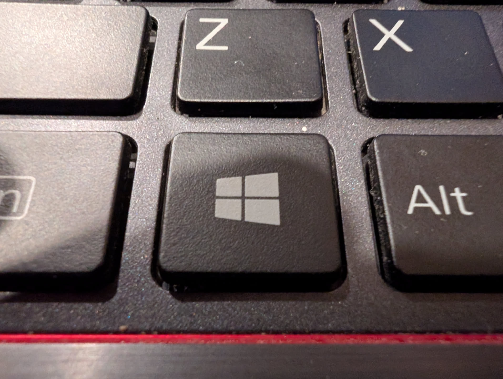 Macro photo of a laptop keyboard. I should have picked a better key than the Microslop Windows key though.