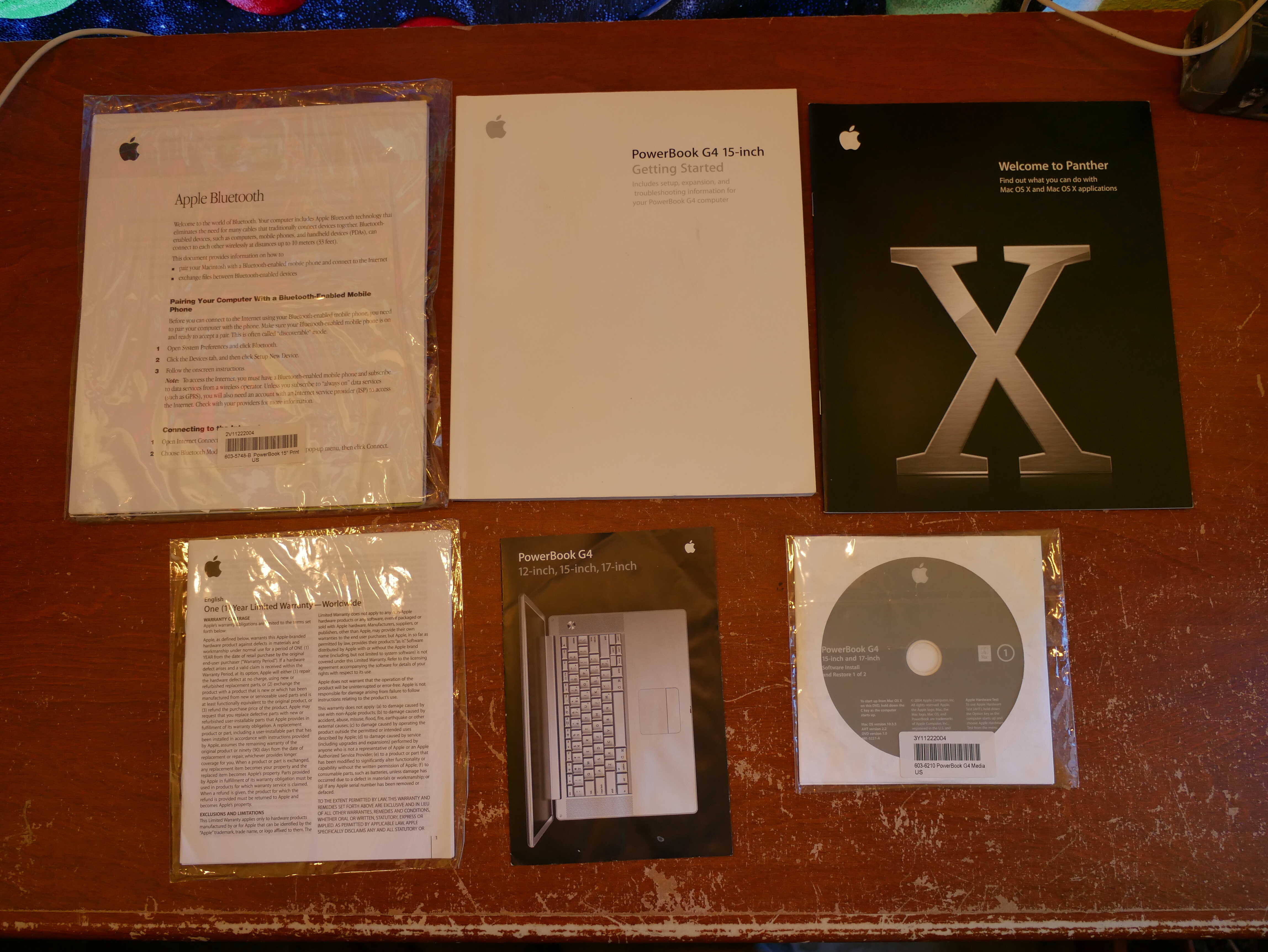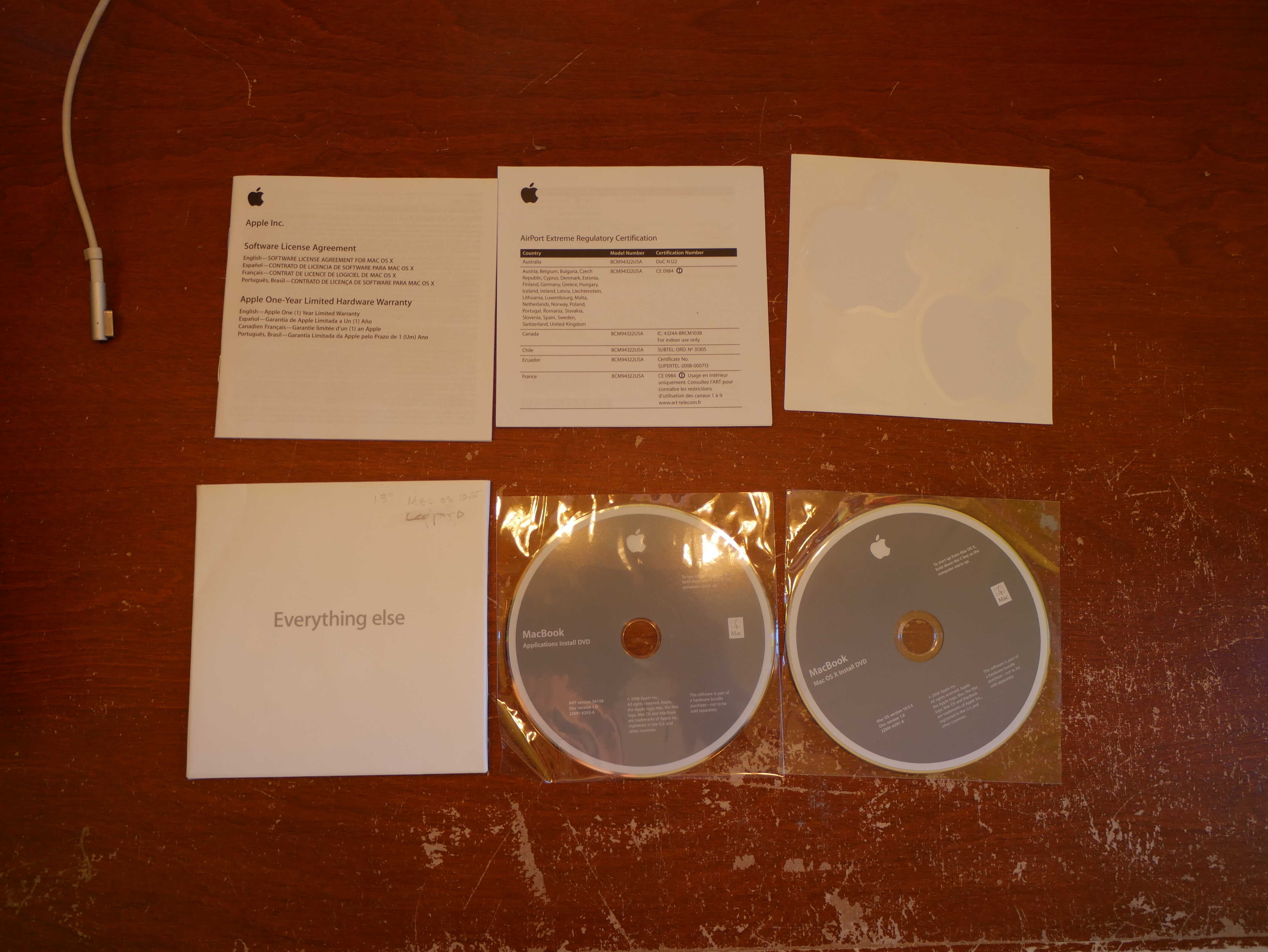 Besides all of the accessories and that software, there was also stuff from the PowerBook and the 2008 MacBook I ended up with. User manuals, Mac propaganda, and recovery discs for the PowerBook, and the recovery discs and Apple stickers for the 2008 MacBook.
