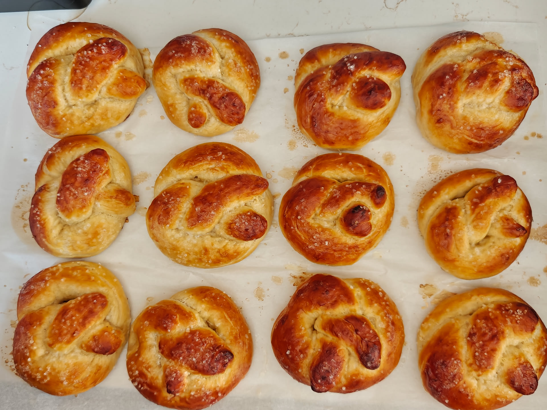 Pretzels on a pan. 1x shot. I did not make the pretzels but I did eat them.